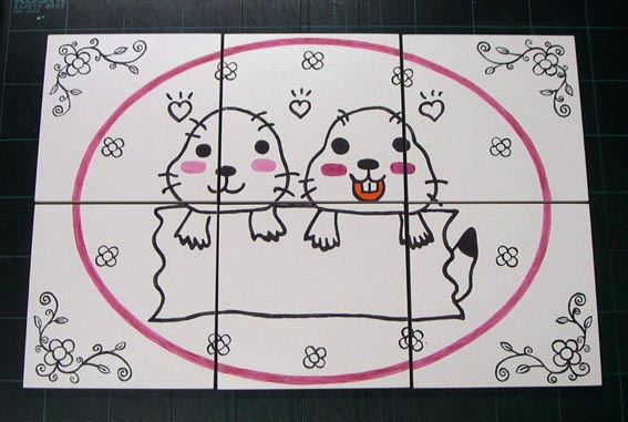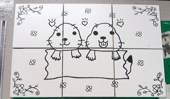 レイアウトをトレースしながら最初に線画部分をタイルに描き焼成します。 |