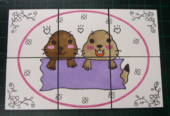 山口県のペポナナ様から玄関ポーチの床に使うウエルカムタイルをご注文いただきました。原画は家族の一員であるプレイリードッグ(pepolyとnana)をモチーフにしたお客様のオリジナルです。(可愛い!) |